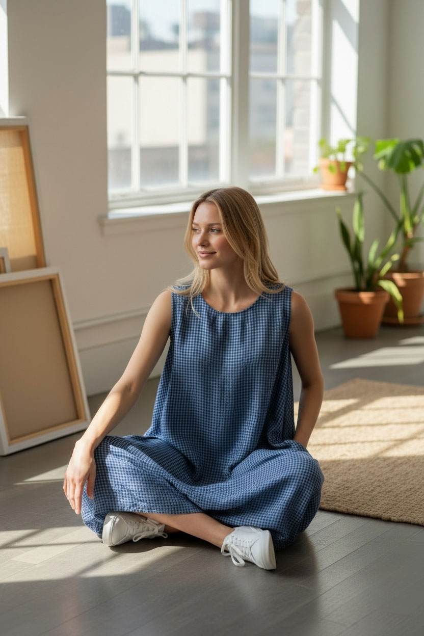Lightweight Linen Mini Check – Cling free drape