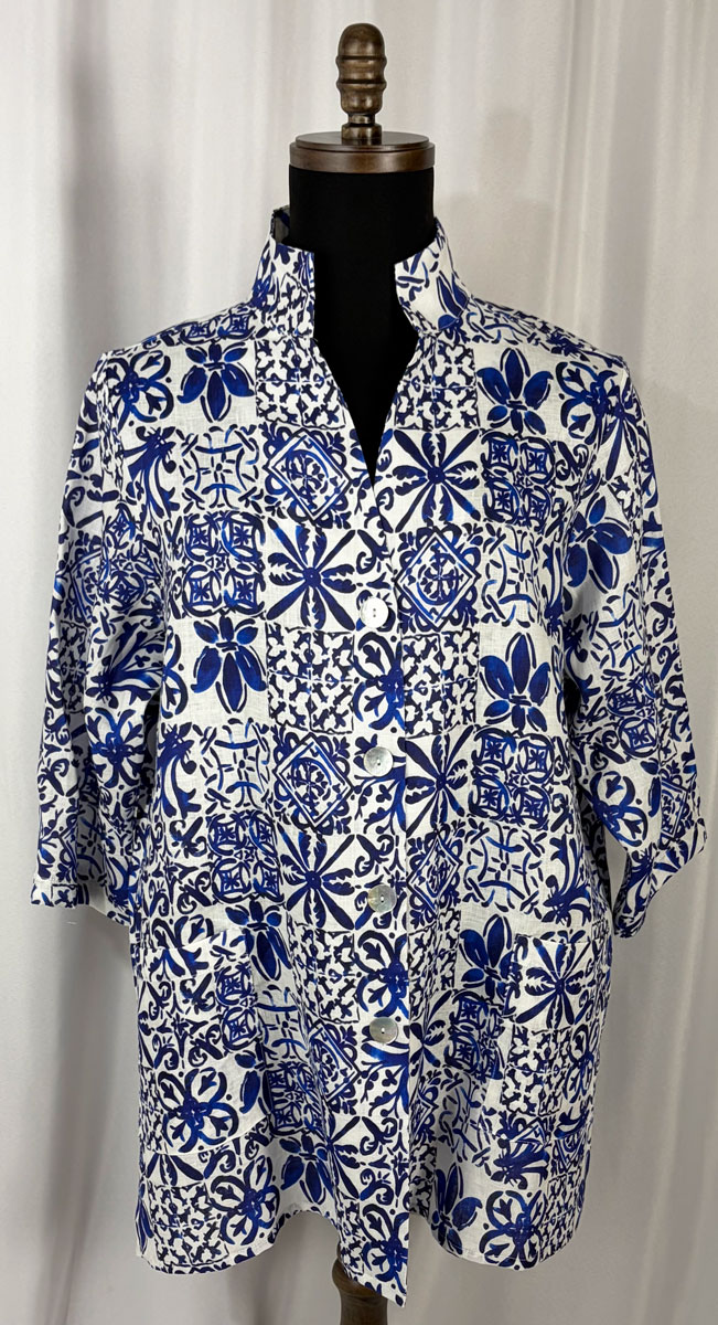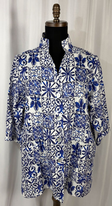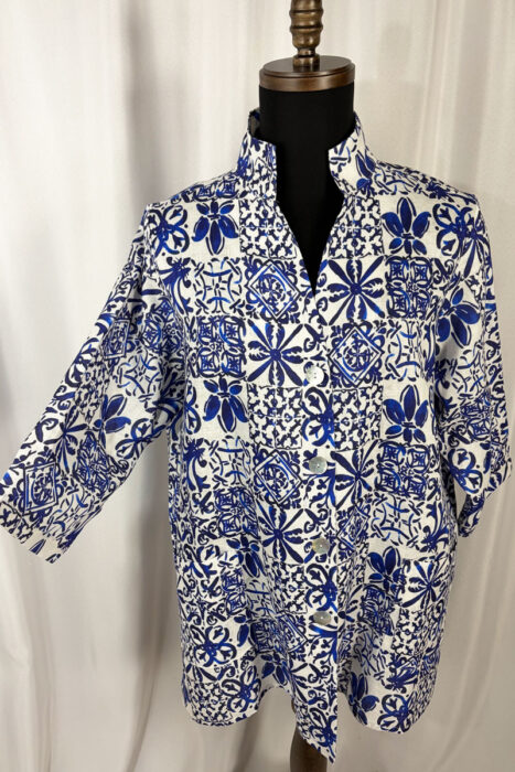 Elegant lightweight linen top, Mediterranean Tile Print