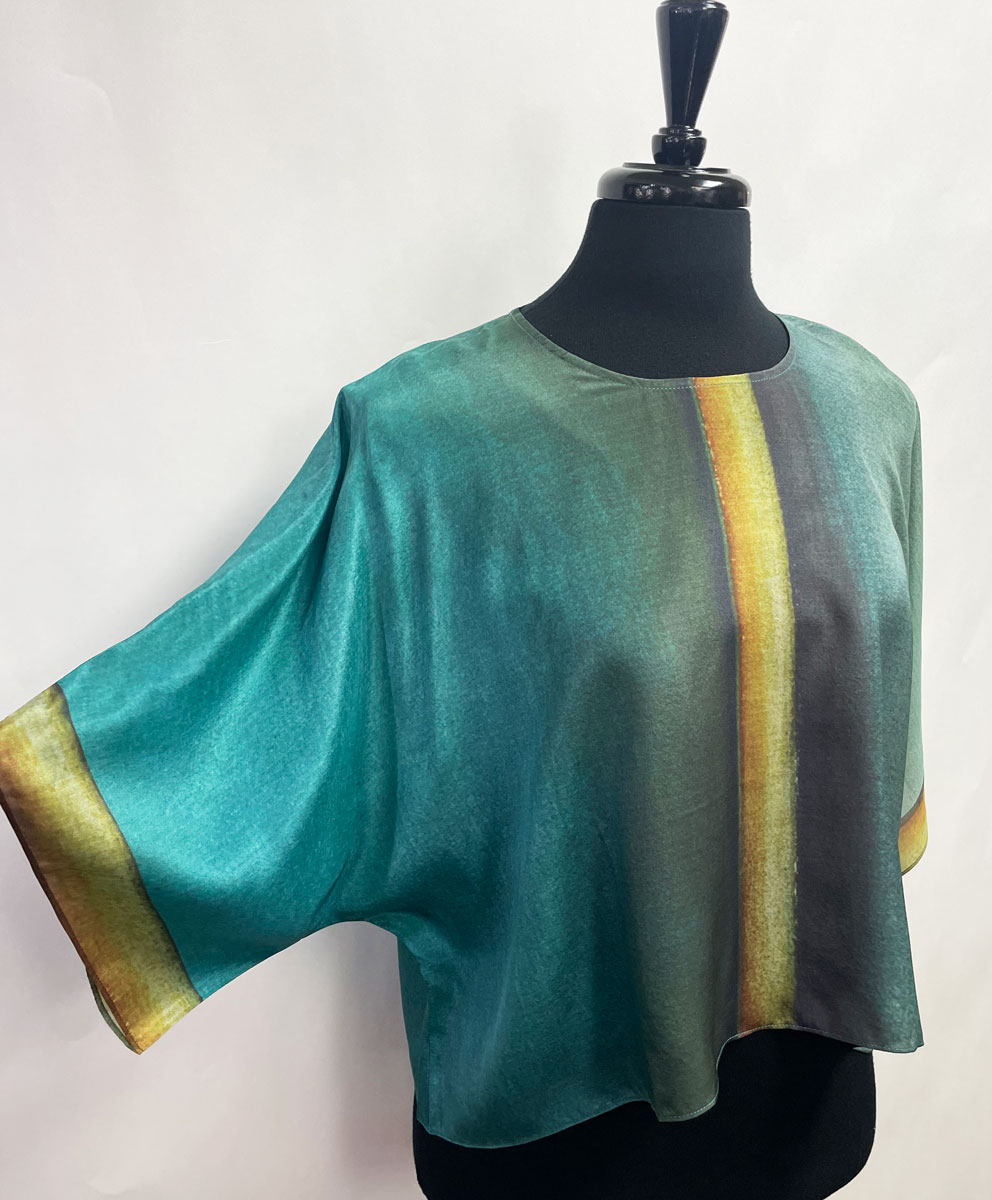 Cocoon House ~ Silk Topper (Eventide) #Z7T15 “Eventide” Dressy Lightweight Silk Top Perfect for a wedding, special event or evening dinner Shorter length Simple styling for big impact 100% Silk SIZES: One Size PRICE: $119.95 #Z7T15