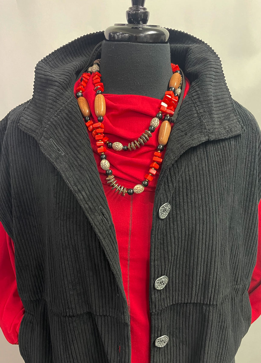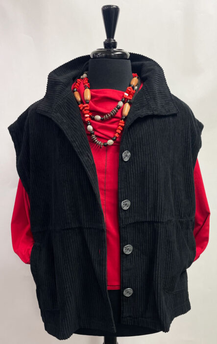 Fenini ~ Corduroy Vest #Z44T1 Perfect fall layer! Corduroy Vest with beautifully sculpted metal buttons Soft wide corduroy Regular length Roomy fit Two side pockets Fabric: 100% Cotton Machine wash cold, tumble dry low Size: L-XXL $129.95 #Z44T1