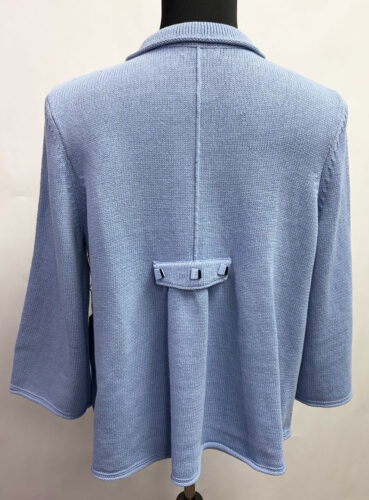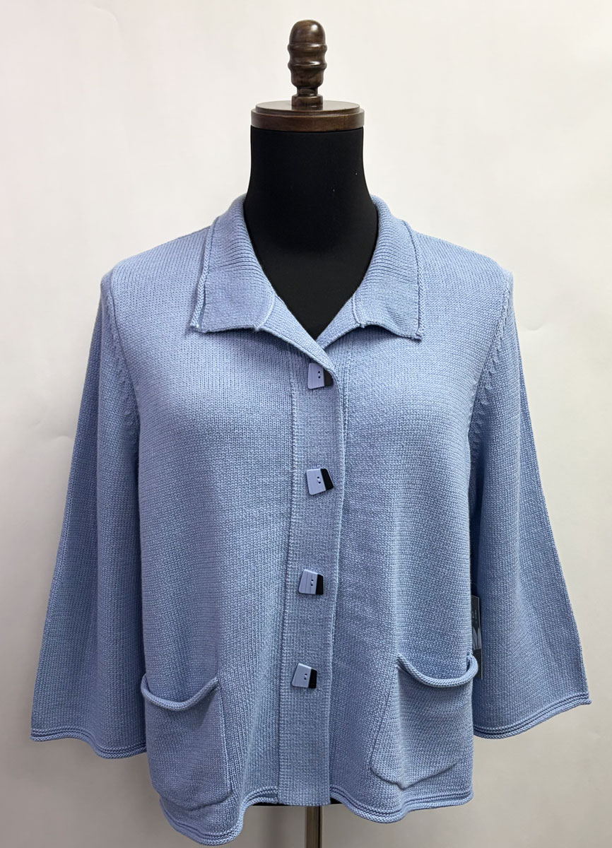 Habitat ~ Pleat Back Sweater Jacket #A24T10 Lightweight cotton blend sweater jacket Perfect summer layer Regular length Two front pockets Traditional collar 3/4 Sleeves Roomy back pleat Fabric: 52% Cotton, 48% Acrylic Machine wash cold, tumble dry low Sizes: M-XL $99.95 #A24T10