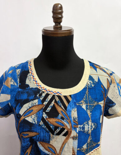 Round neckline with cross-stitch detail