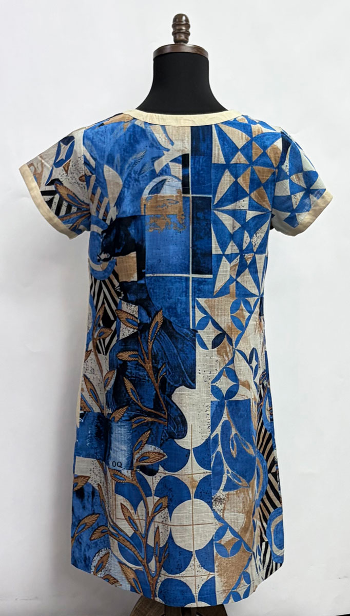 “Wyndham” print in blue and natural hues