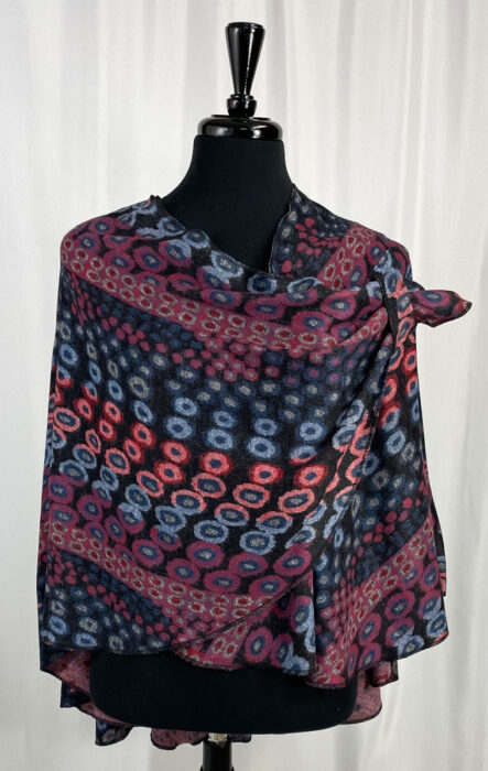 Rapti ~ Cashmere Reversible “Buckle” Wrap #Z41T3-84 Light weight and luxuriously soft Open sides Reversible! Can be worn as a cape or wrap across shoulder Luxurious soft feel, 100% Cashmere Dry clean only SIZES: One size PRICE: $89.95 #Z41T3-84