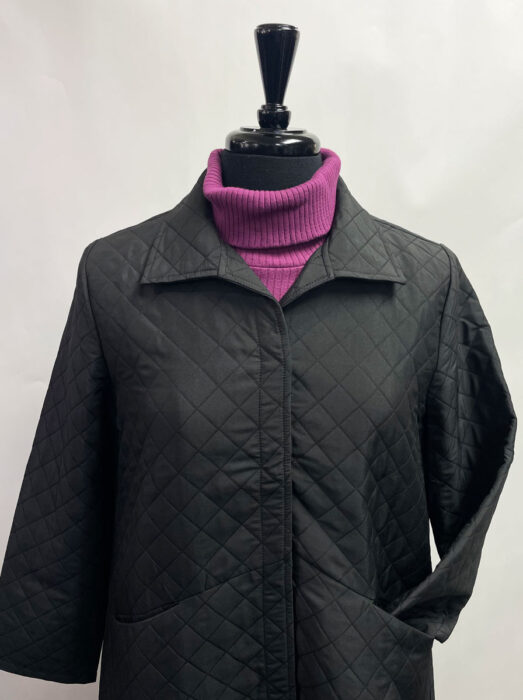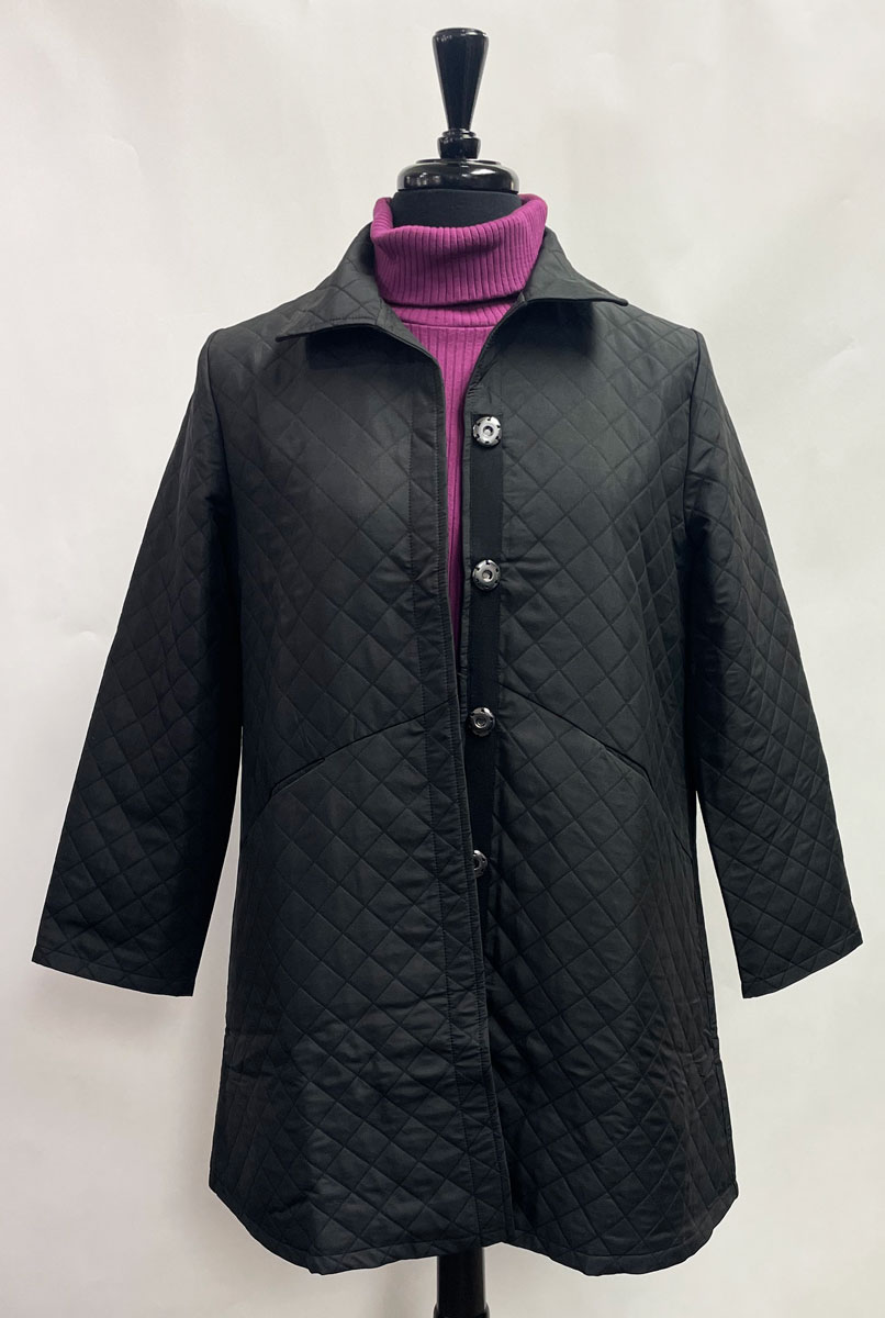 Lightweight Quilted Black Coat with traditional style that adds a classy look to any outfit.