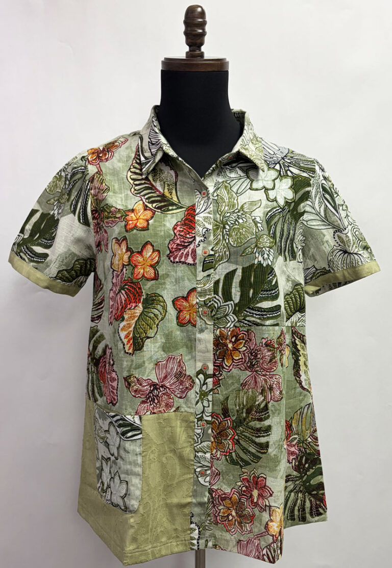 Orientique ~ “Lima Olive” Organic Cotton, Patch Shirt #A62T11