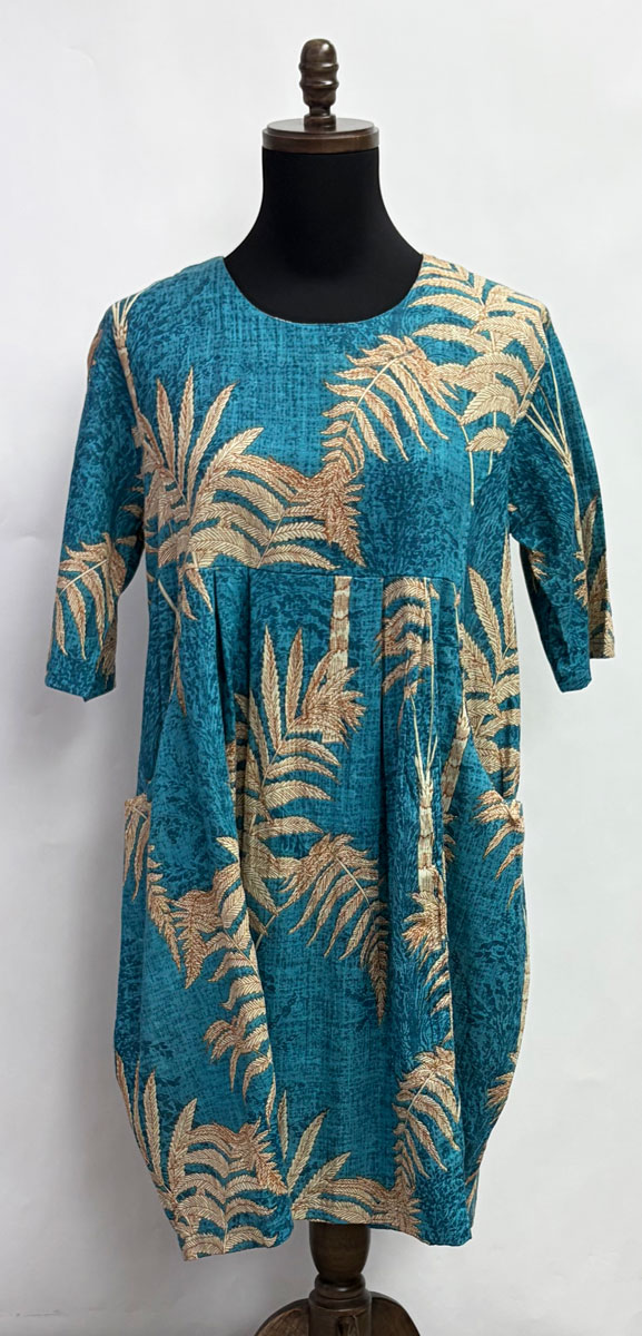 Orientique ~ Ponta Verde Fern, Elbow Sleeve Dress #A62D4