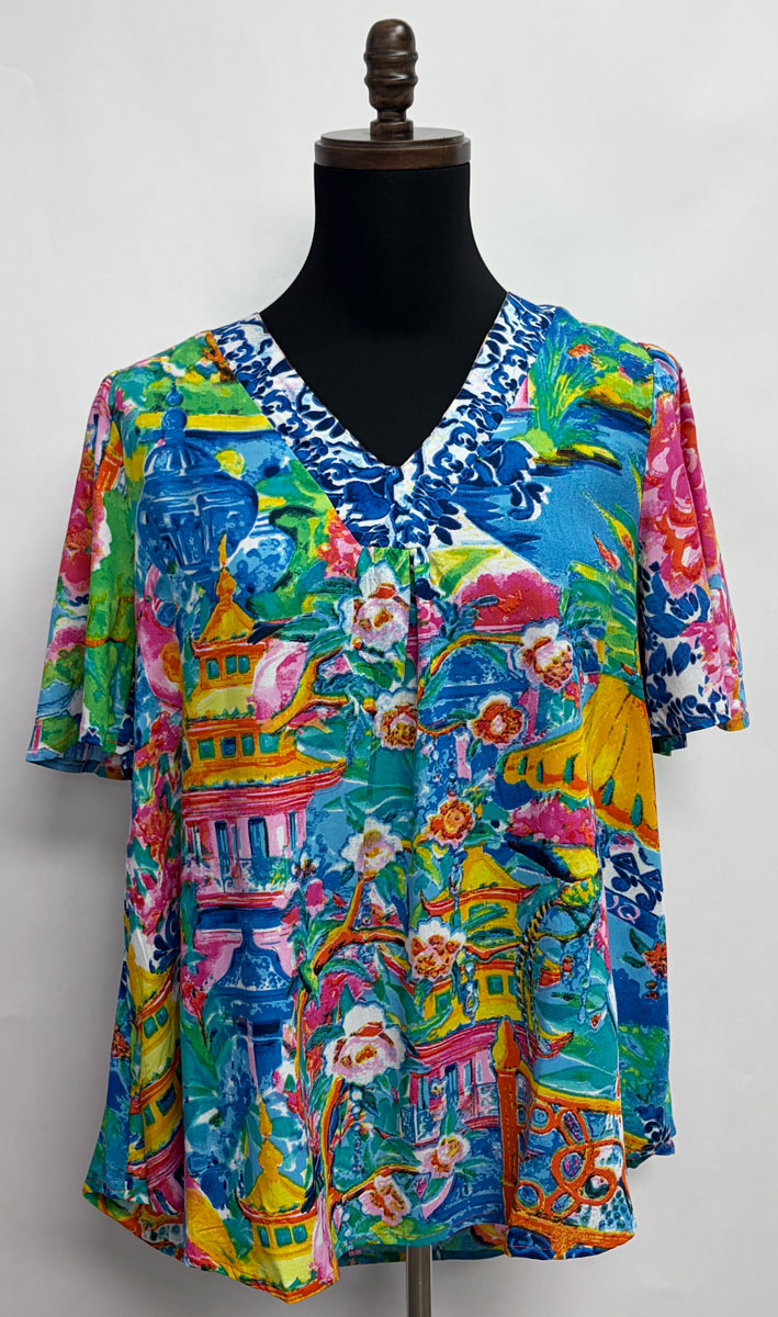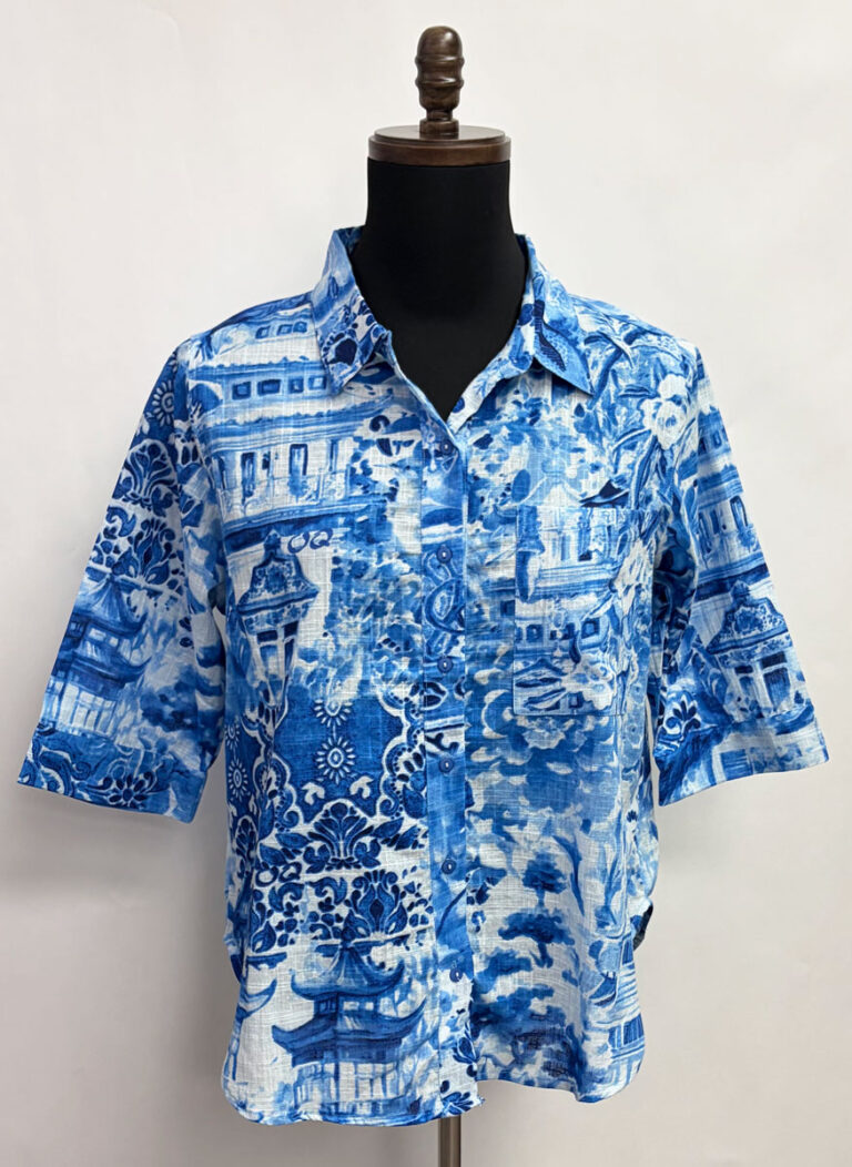Orientique ~ ORGANIC COTTON Top, Blue Town Print #A62T1