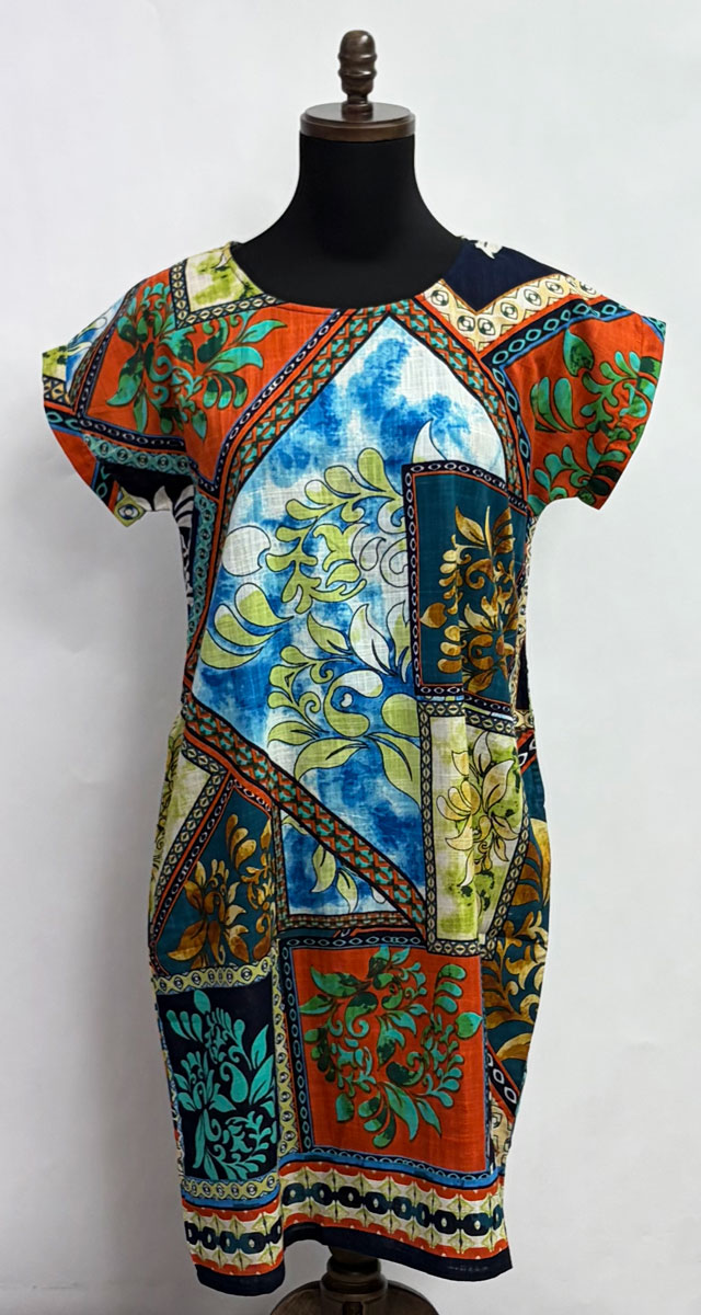 Orientique ~ “Zapplar” Print Rayon Dress #A62D6