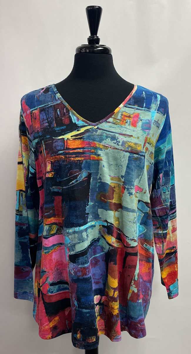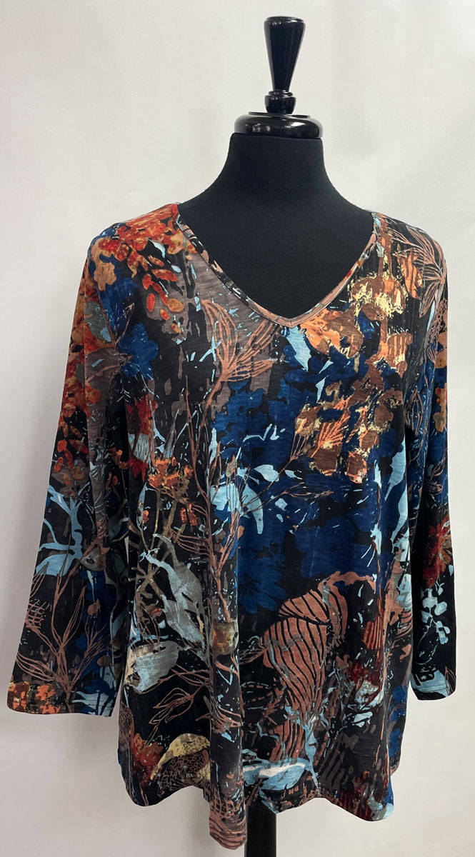 Orientique ~ Positano Print V-neck Tee #Z62T3